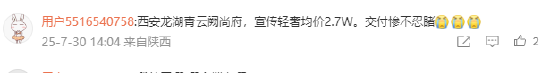 有多位网友留言表示,“这是西安龙湖青云阙”,“均价2.7万一平,交付惨不忍睹”,“龙湖出品,必是精品”。